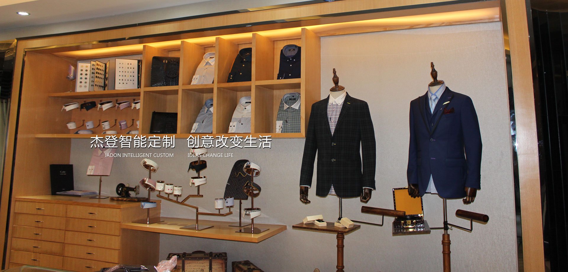 JADON品牌定位于高端定制商務男裝,為商務精英男士展現更自信、成功的形象提供個性定制的服飾產品和優質服務。